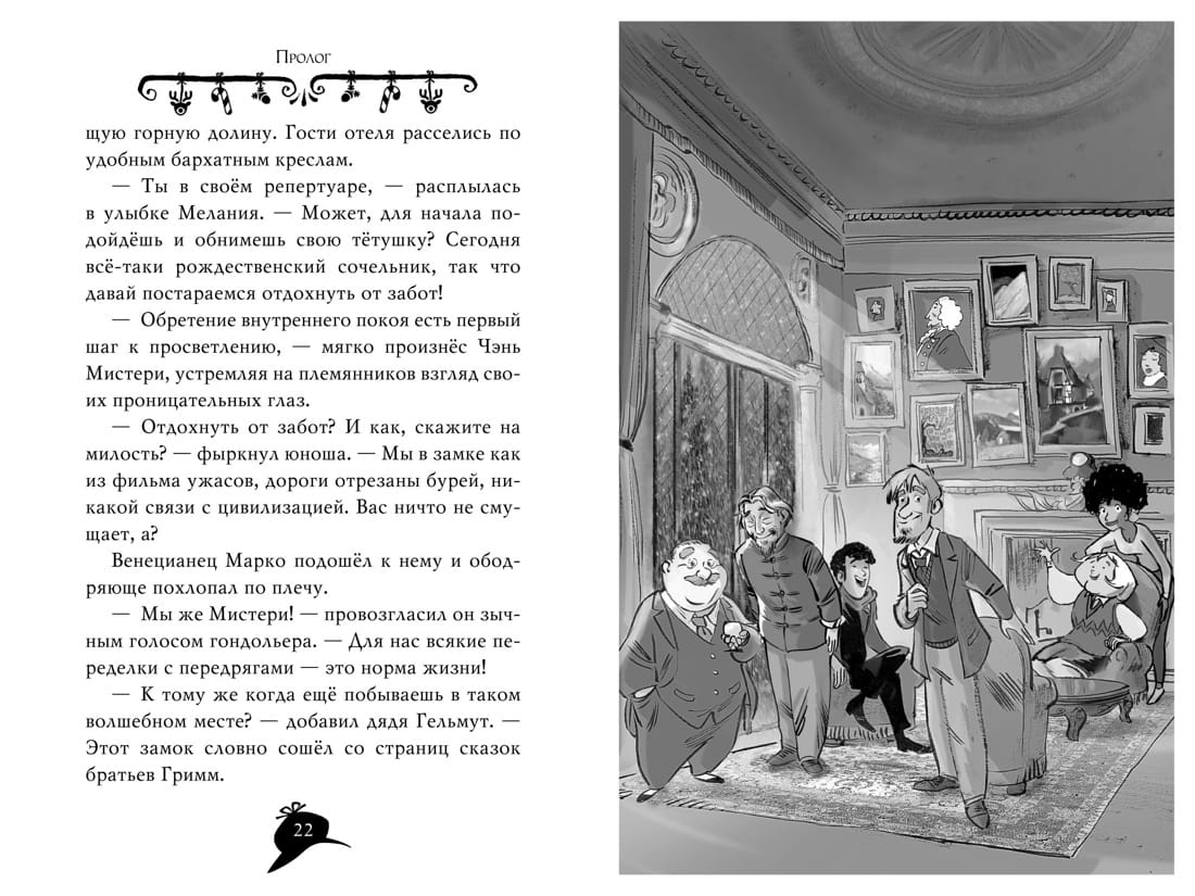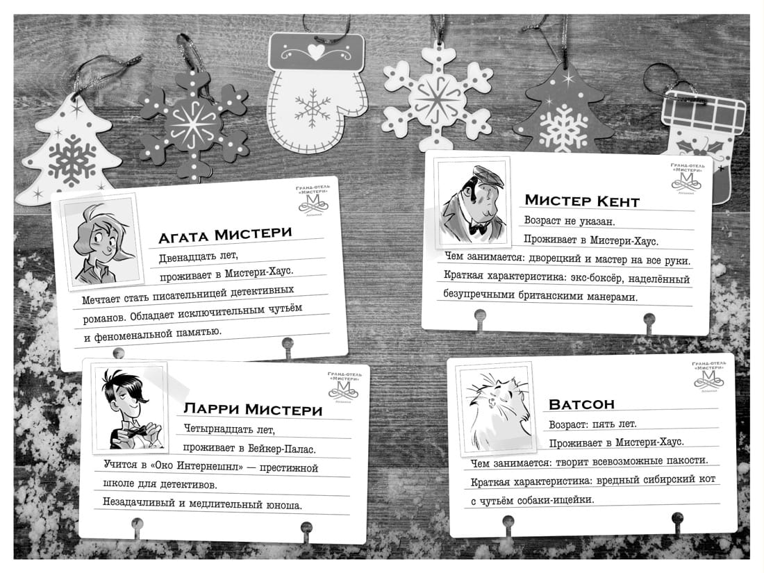 Eight members of the Mystery family are invited to celebrate Christmas in a magnificent grand hotel in mountainous Switzerland. What could be more romantic? The guests are promised a warm welcome and all sorts of entertainment. But when they arrive, Agatha, Larry and Mr. Kent find out that their host is not at home (neither is the Internet), the mountain roads are snowed over, and the ancient castle, which has been converted into a luxurious hotel, hides many secrets. Mysterious accidents, mysterious disappearances, surprising discoveries and heavy objects fall on the guests' heads like snow on the Alps. Entertainment quickly turns into adventure!