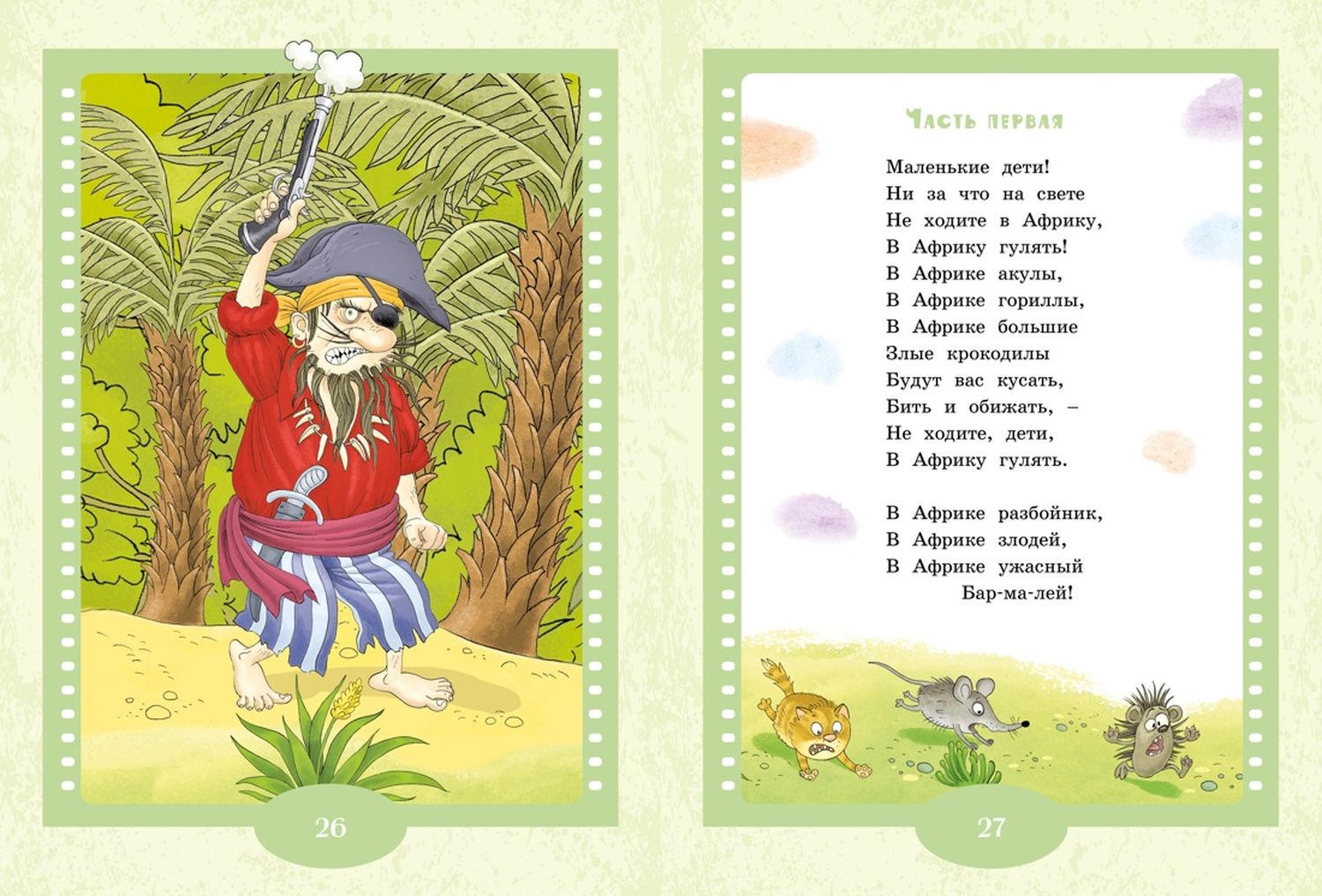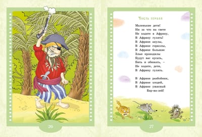 This book presents fairy tales by the famous children's writer Korney Chukovsky. They tell about the kind, brave and selfless doctor Aibolit, who went to Africa to cure sick animals, and about the evil and dangerous robber Barmaley. Little readers will follow the exciting adventures of the heroes with great interest.