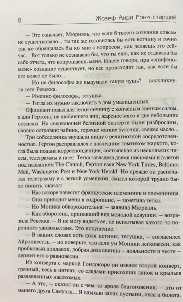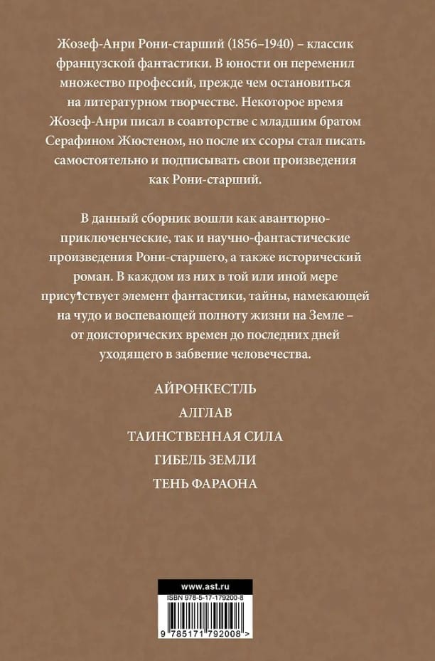 This collection includes both adventure and science fiction works by Rosny the Elder, as well as a historical novel. Each of them, to varying degrees, contains an element of fantasy, mystery, hinting at miracles, and celebrating the fullness of life on Earth—from prehistoric times to the last days of humanity's fading into oblivion.