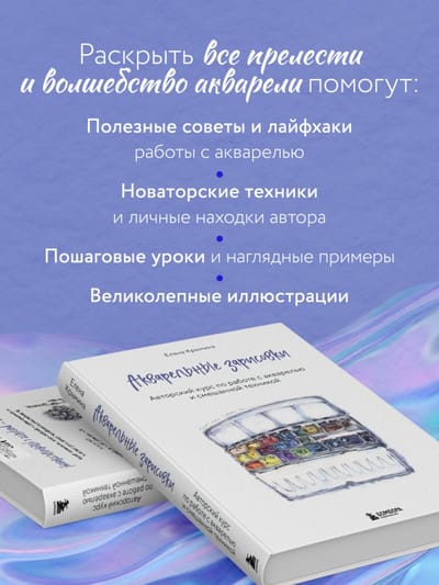 This inspiring manual will become your guide to the world of watercolor, will reveal the secrets of the technique and will help you master the theory that every artist should know. Together with the author, you will select the necessary art materials, learn about the basic principles of working with watercolors and understand how to avoid common mistakes and make your drawings bright and memorable. And to consolidate the theory, the author has compiled step-by-step master classes that will help you immediately apply the theory in practice.
