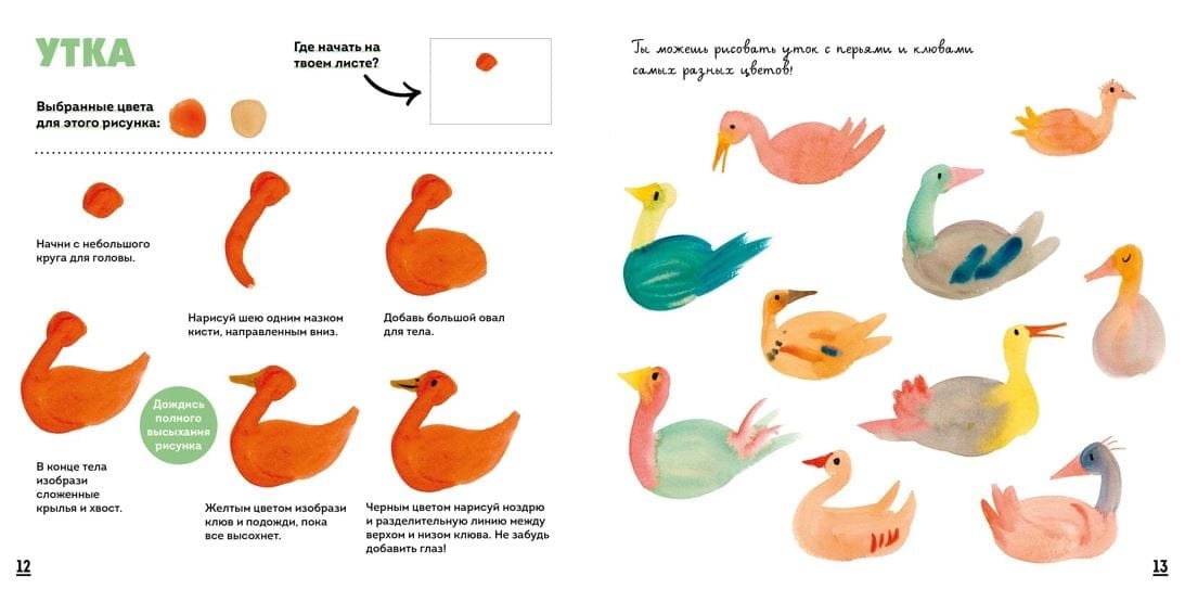 The young artist will learn to draw a rabbit, a frog, a duck, a crocodile, a bear, a lion and many other animals.