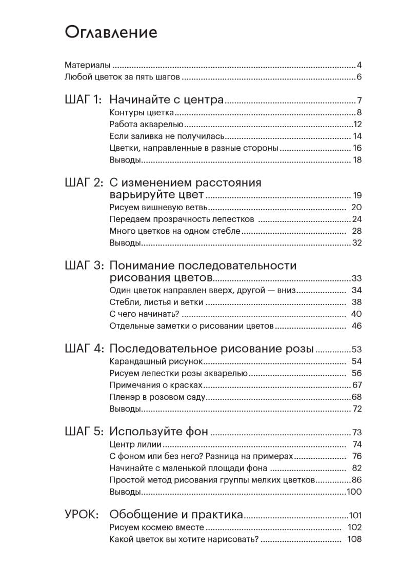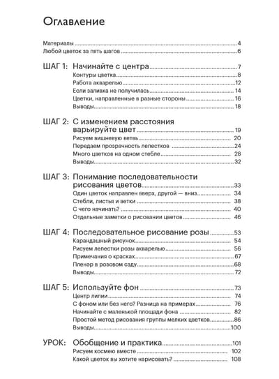 In this concise and charmingly illustrated book by Japanese artist Ai Nakamura, five detailed steps are shown to help you paint different flowers in watercolor simply and effectively. You will learn where to start, how to apply a pencil sketch and use color contrasts for better results, in what sequence to add different elements, how to work with fills and competently apply the background to make flowers look alive and immediately attract the viewer's eye. You will also find here a detailed step-by-step lesson on drawing kosmey and useful tips on technique, choice of object, materials and tools for your watercolor sketches. From the author: The book shows you how to draw any flower in five simple and straightforward steps.