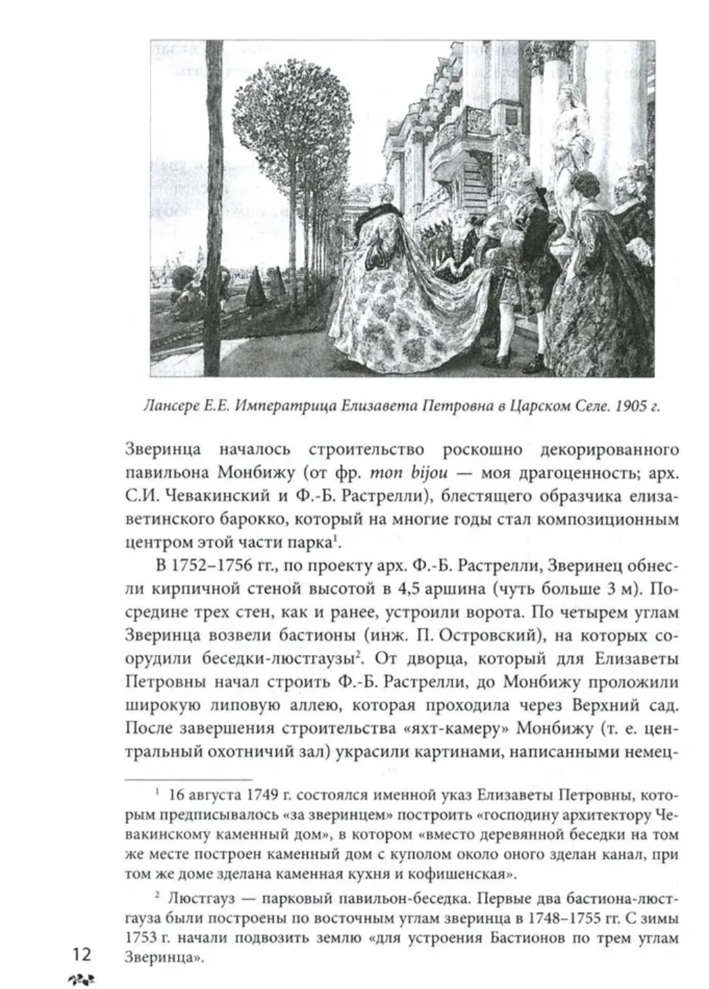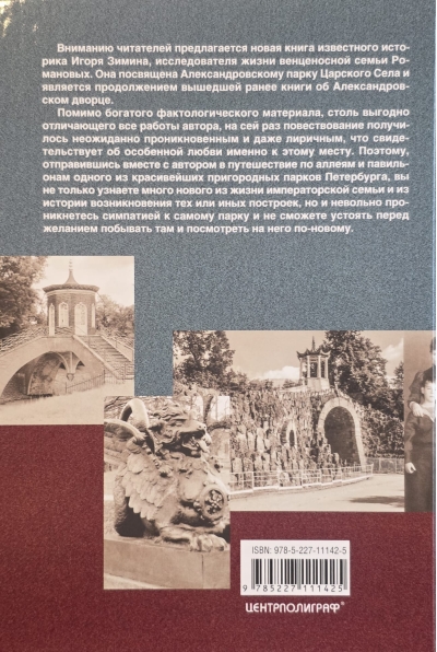 This book is a logical continuation of I.V. Zimin's previously published work, "The Alexander Palace in Tsarskoye Selo." The focus on the history of the Alexander Park, with its numerous structures and pavilions, is motivated by the fact that the park and palace form a single space within the imperial country residence, and studying the history of one without considering the other is inappropriate. The history of the Alexander Park has deeper roots than that of the Alexander Palace. All the emperors and empresses who lived in Tsarskoye Selo from the early 18th century lovingly and diligently developed their residences and parks. As a result, a whimsical fusion of architectural fantasies and preferences emerged within the Alexander Park, revealing not only the talent of the architects but also a reflection of the personal passions of the Russian monarchs.