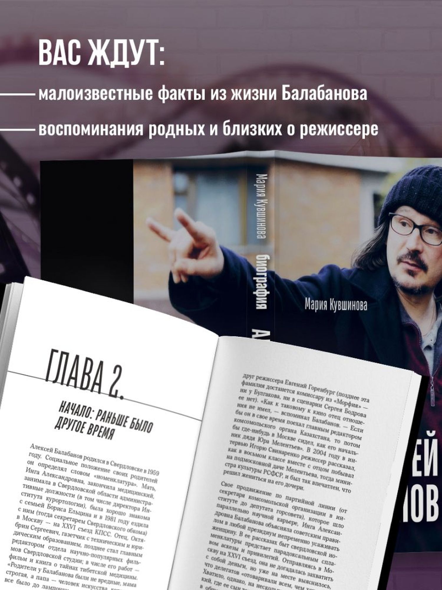 Maria Kuvshinova's book "Alexei Balabanov. Biography" is not just a biography of the great Russian director. It is a carefully woven pattern of memories, critical reflections and fascinating stories that takes the reader along the life and creative path of Balabanov.