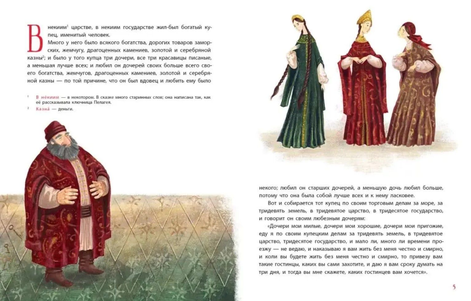 A wealthy merchant had three beautiful daughters. One day, setting off on a long journey, he promised to bring them everything they desired. The two eldest daughters asked for wondrous gifts, and the youngest asked for a scarlet flower, the most beautiful in the whole wide world...