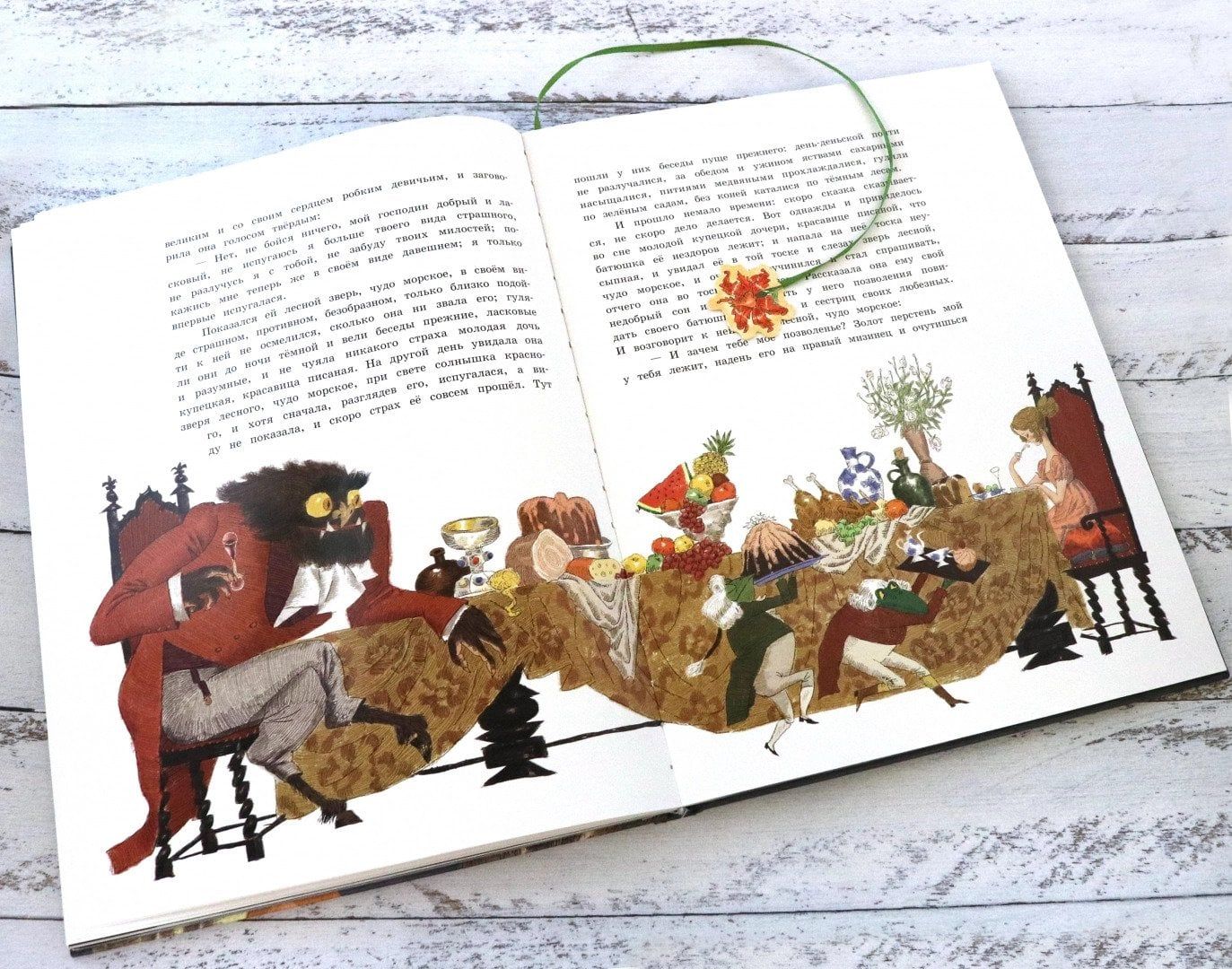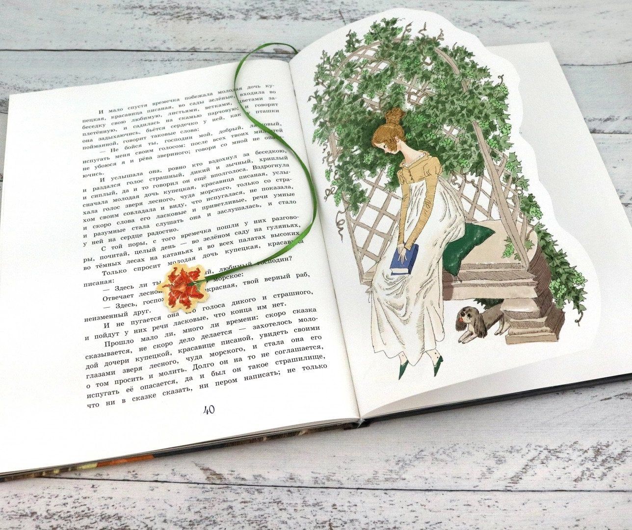 "The Scarlet Flower" - the old story about the enchanted prince is now in an interactive edition! The literary fairy tale by Sergei Aksakov, recorded "from the words of Pelageya Klyuchenitsa", appears in all its glory on the pages of the book-presentation, and the real jewel is the language in which it is told. The reader is waiting for a short journey to the kingdom of Tridevyatoe, the Tridetieth State, where beyond the sea, beyond the thicket impassable unfold before him living pictures - multi-layered volumetric panoramas. Each of them - as an exquisite and complex scene in the paper theater. There will be in this book and a magical palace with unseen gardens, and a beautiful merchant's daughter, and a monster - a forest beast, and thunder arrows, and a happy rescue from the charms. And of course the miracle of wonders will grow on an ant hillock, a marvelous wonder - the scarlet flower.