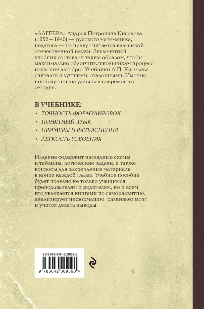 The textbook “Algebra” by Andrei Petrovich Kiselev (1852-1940) is rightly recognized as a classic of Russian scientific literature. This outstanding work is designed to make it easier for students to learn algebra. Kiselev’s textbooks are famous for their accuracy and clarity, which makes them relevant today.