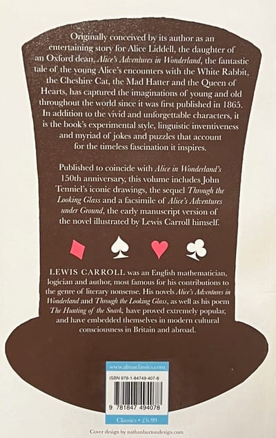 Originally conceived by its author as an entertaining story for Alice Liddell, the daughter of an Oxford dean, Alice’s Adventures in Wonderland, the fantastic tale of the young Alice’s encounters with the White Rabbit, the Cheshire Cat, the Mad Hatter and the Queen of Hearts, has captured the imaginations of young and old throughout the world since it was first published in 1865. In addition to the vivid and unforgettable characters, it is the book’s experimental style, linguistic inventiveness and myriad of jokes and puzzles that account for the timeless fascination it inspires.
