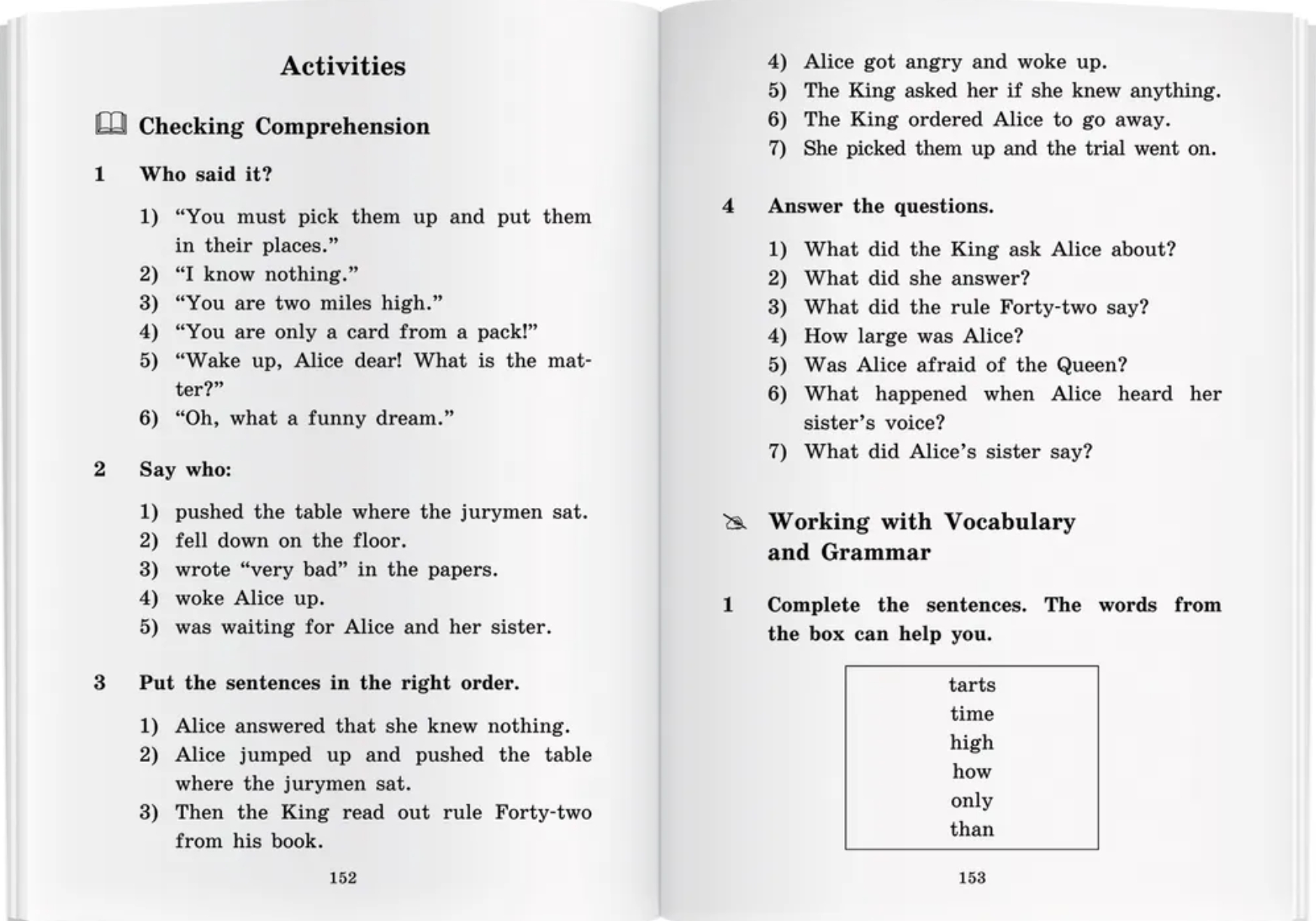 This book is an adaptation of Lewis Carroll's famous story about the unusual adventures of a little girl named Alice in Wonderland. Each chapter is followed by exercises designed to test comprehension, practice vocabulary and grammar, and develop oral communication skills. The manual includes page-by-page commentary and an English-Russian dictionary. It is intended for students in grades 5 and 6 of schools, gymnasiums, and lyceums.
