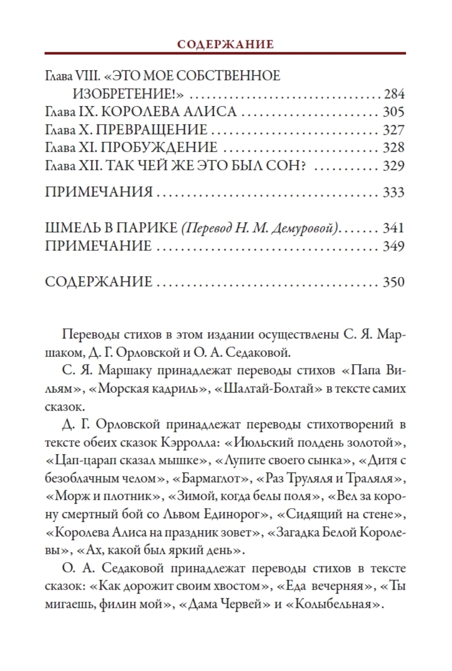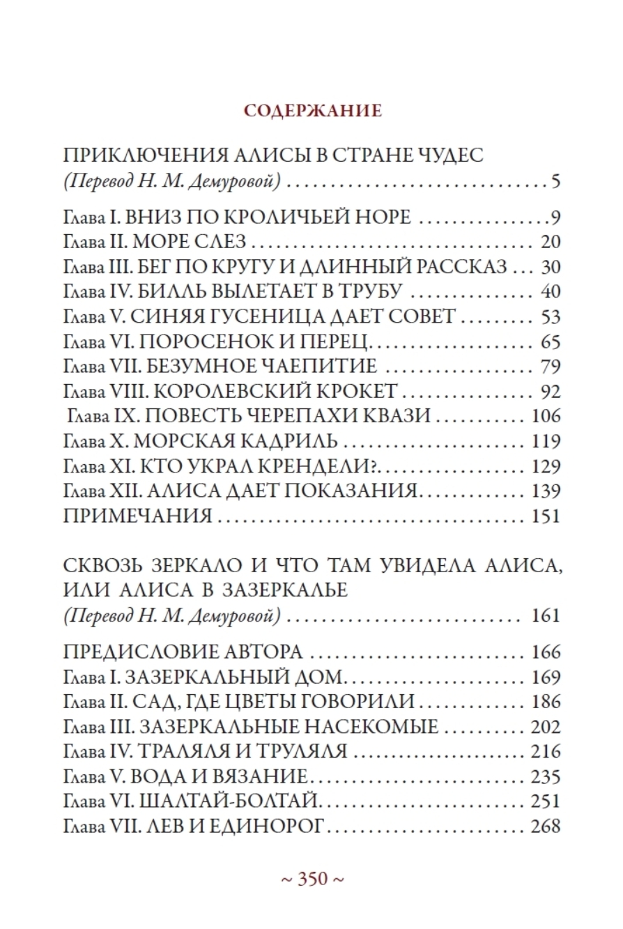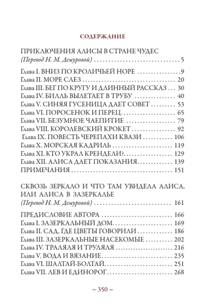 This collection includes the famous fairy tales "Alice's Adventures in Wonderland" and "Through the Looking-Glass: What Alice Saw There" by British author Lewis Carroll (1832–1898). "Through the Looking-Glass" is supplemented by a chapter, "The Bumblebee in a Wig," which was not included in the final text. The texts are embellished with classic illustrations by the English artist John Tenniel (1820–1914). The tales are presented in a translation by Doctor of Philology Nina Mikhailovna Demurova (1930–2021).