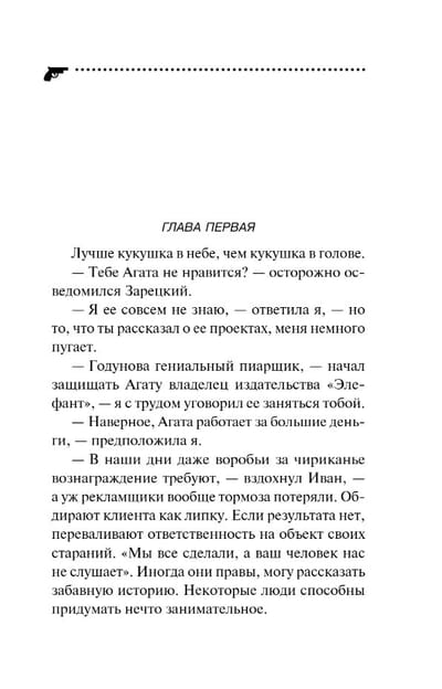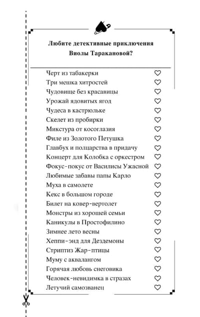 Better a cuckoo in the sky than a cuckoo in the head. This is what Viola thought on the way to a small town near Moscow, anticipating a fun adventure. Publishing house "Elephant" asked Viola Tarakanova, writing under the pseudonym Arina Violova, to go to Kustovo to take part in the game "Treasure Hunt". The game was started by the mayor of Kustovo, Peter Zotov, to attract tourists to his town. The idea was that Vilka should find a golden chest containing the diary of Evdokia, a local celebrity, and use it for her book. Tarakanova arrives in Kustovo, settles in the mayor's house and enters the game. But the organizers gave the wrong ground plan, so Vilka accidentally digs up not a chest, but a box... with a child's brown-stained shirt, a ball and a knife! Tarakanova finds out that this is evidence of a long ago murder of a little boy, and the perpetrator is already in prison. But the favorite woman of the convict is sure of his innocence and asks Viola to prove it. And so when Viola learns who the real villain is, she becomes quite uncomfortable. After all, this man was too, too close!