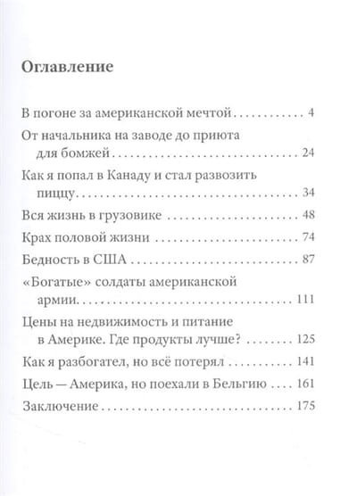 "Goodbye America, we have been taught to love your forbidden fruits for so long," sang the band Nautilus Pompilius in the late 80s. Indeed, to a Soviet person any foreign country, and especially the distant and mysterious America seemed the most real paradise on earth. In the late 90's the author emigrated and worked for 20 years in North America, chasing the American dream. However, the real life in emigration turned out to be the collapse of his hopes for a "fairy-tale life". What he saw there was radically different from the glossy picture that Hollywood paints. What are the real prices and wages in the United States and Canada? What difficulties do those who leave for the West face? Why are American retirees selling their apartments? How are Canadian truckers being robbed? What do Canadian female students earn? Why do programmers in America become loaders? What is the meaning of life for ordinary Americans? Is America really a country of great opportunities? The vast experience of survival in a different environment is the basis of the book, which may warn someone from fatal mistakes and make them think about whether it is so good where we are not?
