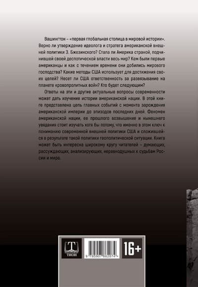 The study of the history of the American nation can provide answers to these and other pressing questions of our time. This book presents a chain of major events from the birth of the American empire to the episodes of the last days. The phenomenon of the American nation, its past rise and current withering is worth studying, if only because this is the key to understanding the modern foreign policy of the United States and the geopolitical situation that has emerged as a result of this policy. The book may be of interest to a wide range of readers - those who think, reason, analyze, and are not indifferent to the fate of Russia and the world.