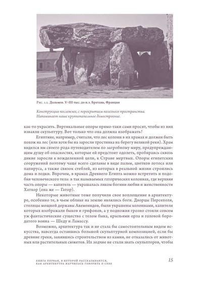 An important part of the publication is the illustrative component. These are more than 380 illustrations - photographs, engravings, paintings, which present masterpieces of Michelangelo, Le Corbusier, Alexey Shchusev, Konstantin Melnikov and other outstanding architects.