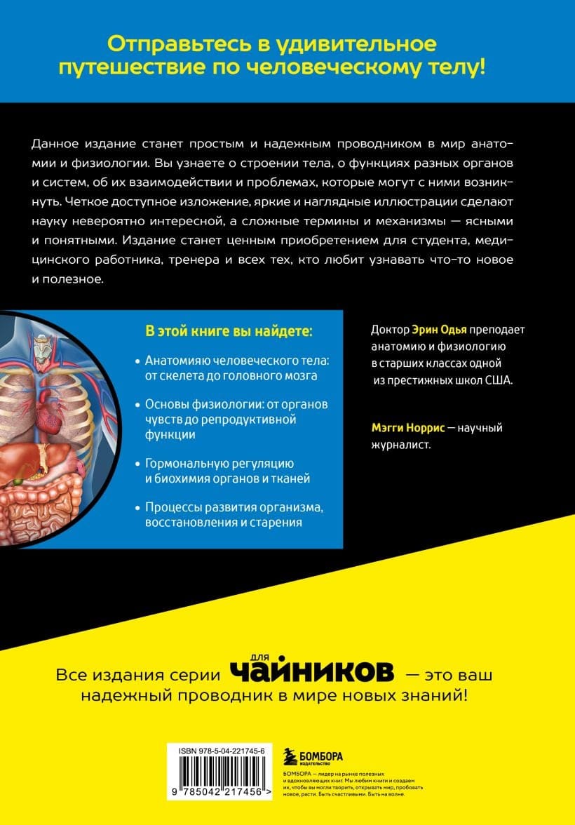 The authors—anatomy and physiology instructor Erin Oudya and science journalist Maggie Norris—explain complex biological processes in simple language, complemented by illustrative illustrations. The reader is introduced step by step to cells and tissues, organs and systems, learning how they are structured and interact with each other.