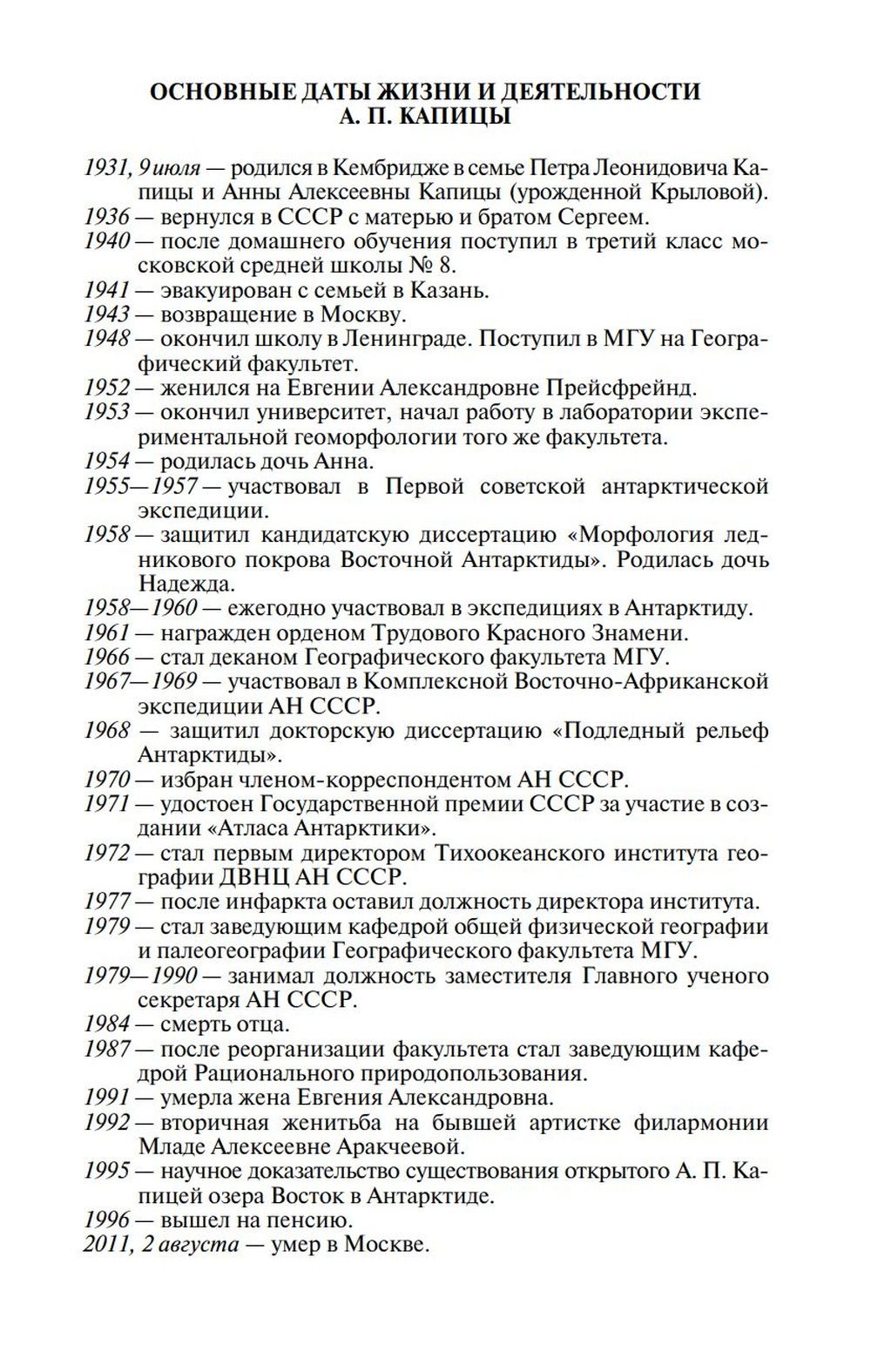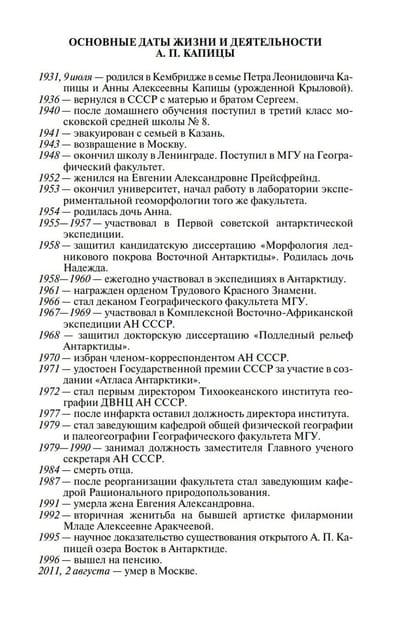 The life of this outstanding scientist, full of travels and searches, losses and gains, is told in his first detailed biography, which was created by Mikhail Slipenchuk and Alexey Shcherbakov based on the family archive of A. P. Kapitsa.