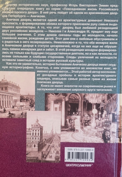 Doctor of Historical Sciences, Professor Igor Viktorovich Zimin presents the latest book in the "Daily Life of the Russian Imperial Court" series. It explores one of St. Petersburg's most beautiful palaces—Anichkov Palace. Anichkov Palace is one of the architectural landmarks of Nevsky Prospekt, and the most prominent architects contributed to its design. But the palace is even more significant as the beloved residence of two Russian monarchs—Nicholas I and Alexander III. This house marked their youth, the beginning of their family life, and the birth of their children. They lovingly furnished this home and returned to it with joy. It is also significant that both monarchs lived in Anichkov Palace as Tsareviches, before the avalanche of royal duties and concerns overwhelmed them. In this residence, the monarchs were shaped not only as future statesmen but also as individuals, with all their strengths and weaknesses. The traces of their youthful passions have left a noticeable mark on the history of Russian culture. Surprisingly, the history of the Anichkov Palace is sparsely researched. Of course, it's mentioned in numerous books, but only mentioned... With this work, the author fills in the unfortunate gaps in the history of this architectural masterpiece, describing the many facets of the Anichkov Palace's life. This book is unique on the market today and deserves the attention of the widest possible readership.