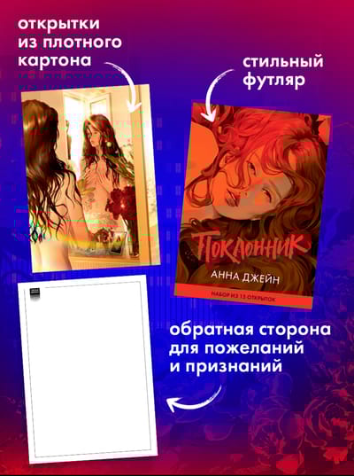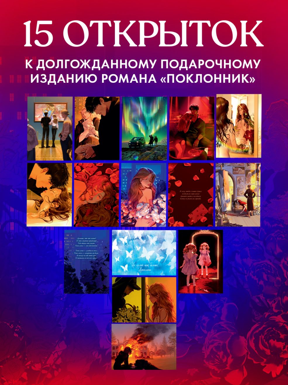 A set of 15 postcards based on the novel "The Admirer" by Anne Jane