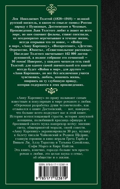 "Anna Karenina" - the best novel about a woman written in the XIX century. According to F. M. Dostoevsky, "Anna Karenina" struck contemporaries "not only the all-day content, but also a huge psychological development of the human soul, terrible depth and strength". Already by the early 1900s Tolstoy's novel was translated into many languages of the world, and is now part of the golden fund of world literature.