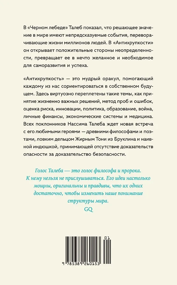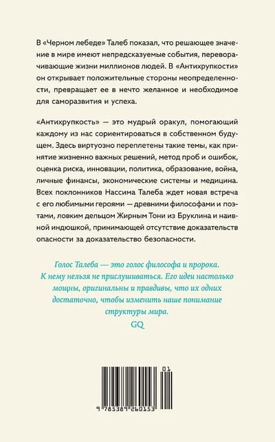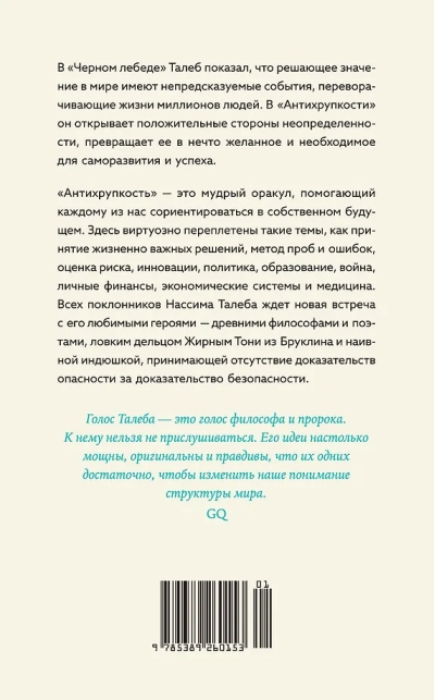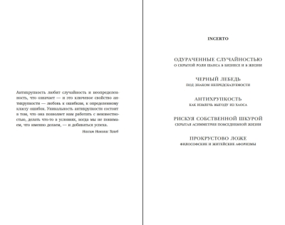 Taleb formulates simple rules that allow us to overcome fragility and act in a way that prevents unpredictable uncertainty, that dreadful and sudden Black Swan, from harming us—and, moreover, allows this rare and powerful bird to help us improve. To do this, we must first recognize that we are antifragile by nature and must not allow anyone to deprive us of this wonderful property.