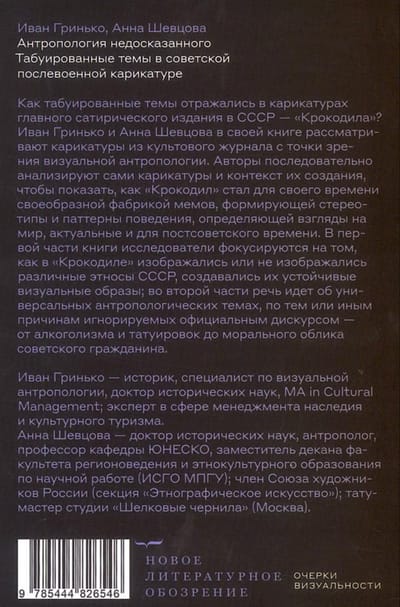 How were taboo topics reflected in the cartoons of the main satirical publication in the USSR, Krokodil? Ivan Grinko and Anna Shevtsova examine the cartoons from the cult magazine from the point of view of visual anthropology in their book. The authors consistently analyze the cartoons themselves and the context of their creation in order to show how Krokodil became a kind of meme factory for its time, forming stereotypes and behavior patterns, defining views on the world that are still relevant for the post-Soviet era. In the first part of the book, the researchers focus on how Krokodil depicted or did not depict various ethnic groups of the USSR, creating their stable visual images; the second part deals with universal anthropological themes that were ignored by the official discourse for one reason or another - from alcoholism and tattoos to the moral character of a Soviet citizen.