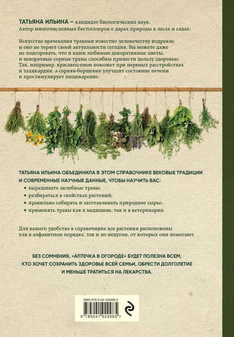 One trip to the pharmacy can cost several thousand rubles, even if you have the most common cold. Do you agree, it hits your wallet? But what if you start growing medicinal plants yourself that will preserve your family's health and save its budget? In this book, biologist and author of numerous bestsellers about forest and garden plants Tatyana Ilyina will share with you how to grow, collect, prepare medicinal herbs, as well as how to use them in medicine and veterinary science.