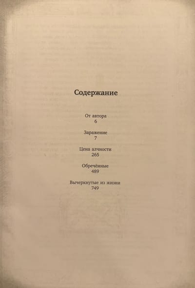 This collection includes four works from the "Area" cycle: "Infection," "The Price of Greed," "Doomed," and "Erased from Life."