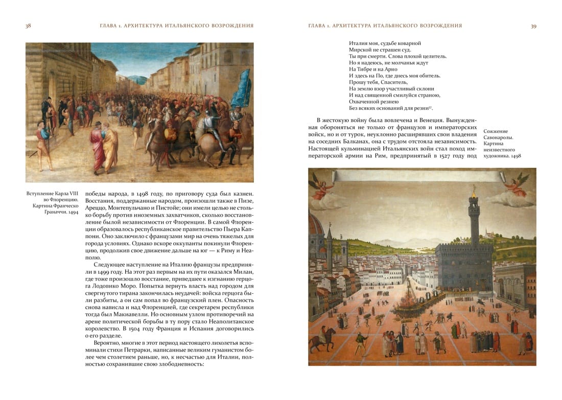 The book by the famous St. Petersburg art historian, expert in architecture, Doctor of Art History V. G. Lisovsky is the first and so far the only publication in Russian, which systematically outlines the history of Italian architecture from the Pre-Renaissance to the Late Renaissance. The reader is presented with the widest panorama of Italian architecture of the XIV-XVI centuries: description and stylistic analysis of hundreds of monuments, characterized their urban role and connection with significant historical events and personalities, considered the work of the great masters - Brunelleschi, Alberti, Bramante, Raphael, Michelangelo, Vignola, Palladio. The author speaks in his own way about the heritage of the great epoch, the traditions of which remain alive today. The book is addressed to both specialists and art lovers. It can be useful as a textbook and as a travel guide when traveling in Italy.