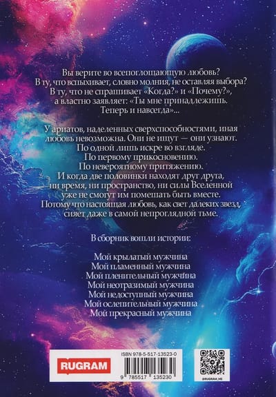 Do you believe in all-consuming love? The kind that flashes like lightning, leaving no choice? The kind that doesn't ask "When?" or "Why?", but declares with authority: "You belong to me. Now and forever." For the Ariats, endowed with superpowers, no other kind of love is possible. They don't search—they recognize. By a single spark in a glance. By the first touch. By an incredible attraction. And when two halves find each other, neither time, nor space, nor the forces of the Universe can prevent them from being together. Because true love, like the light of distant stars, shines even in the most impenetrable darkness.