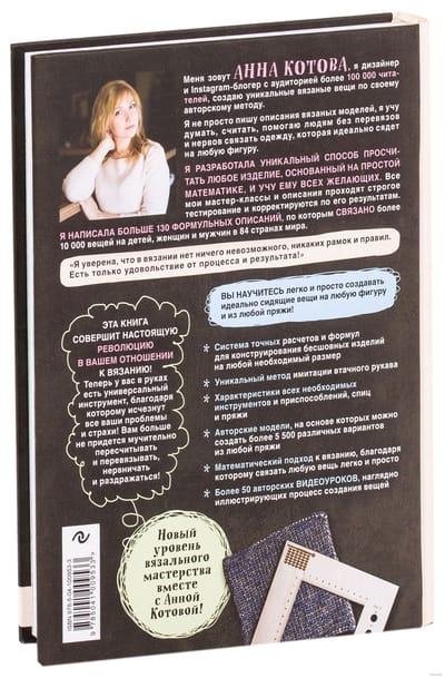 Anna Kotova, designer and Instagram-blogger with an audience of more than 100 000 active and engaged subscribers, has developed a unique author's method of calculations, thanks to which you will be able to knit any thing for any figure, any size and from any yarn for women, men and children without tying and tears.