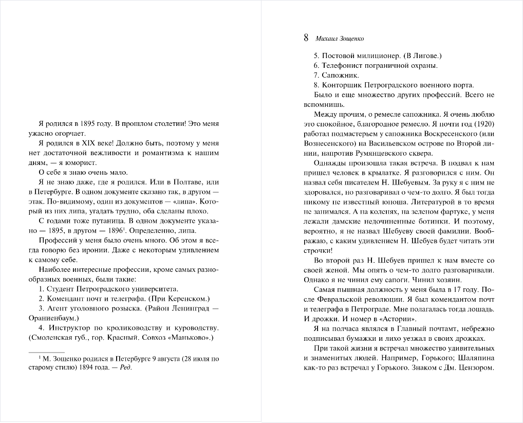 Mikhail Zoshchenko (1894-1958) survived two world wars and criticism of Soviet power. He worked as a policeman, a bookkeeper, a shoemaker, a poultry instructor, a border guard telephonist, and a criminal investigation agent.