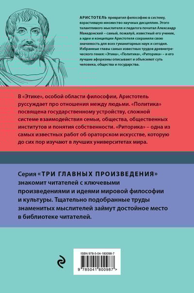 Continuing the series "3 Major Works. A Selected Library." Three major treatises and selected aphorisms by Aristotle under one cover! In "Ethics," one of the leading philosophers of antiquity examines the foundations of morality and human virtue; in "Politics," he explores the rational structure of society; and in "Rhetoric," he explores the art of debate and persuasion.