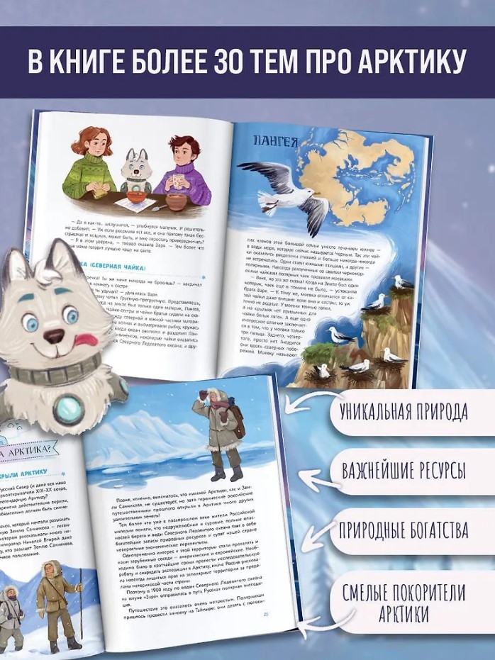 A thrilling adventure awaits readers with this inseparable trio: they'll meet polar bears and walruses, ride powerful icebreakers of the Northern Fleet, and discover the countless treasures hidden beneath the permafrost. This book is a captivating encyclopedia in storytelling format that will introduce children to the amazing world of the Arctic, telling them about its unique nature, brave people, and the most important treasures that must be protected.