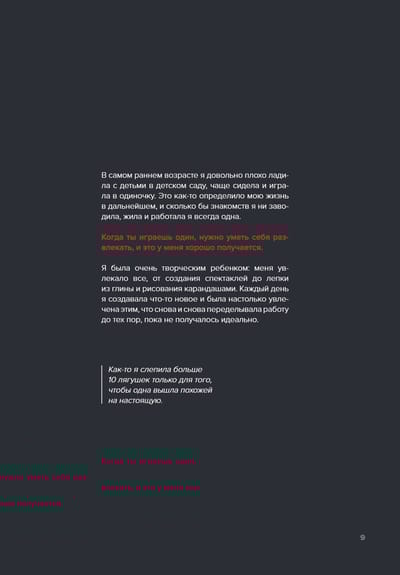 The pages of the art book contain the best works from 2022 to 2024. All illustrations are accompanied by a short story by the artist about herself and her work, where she will tell about the features of the style, author's techniques, ideas of inspiration behind the creation of works, and even step by step analyze several of them.