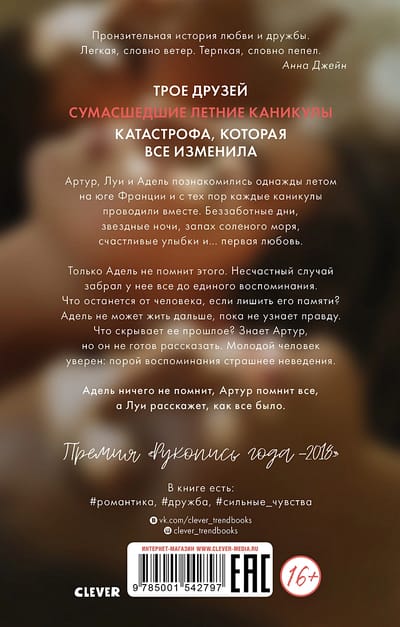 Only Adele doesn't remember it. The accident took every single memory from her. What's left of a person if you take away their memory? Adele can't move on until she knows the truth. What does her past hide? Arthur knows, but he is not ready to tell. The young man is sure that sometimes memories are more terrifying than ignorance. Adele remembers nothing, Arthur remembers everything, and Louis will tell her how it was.