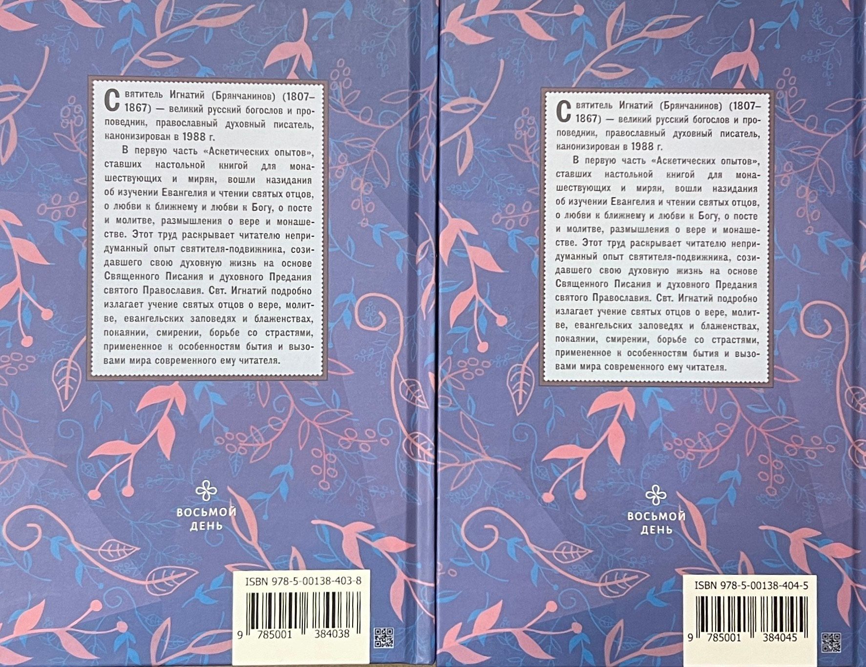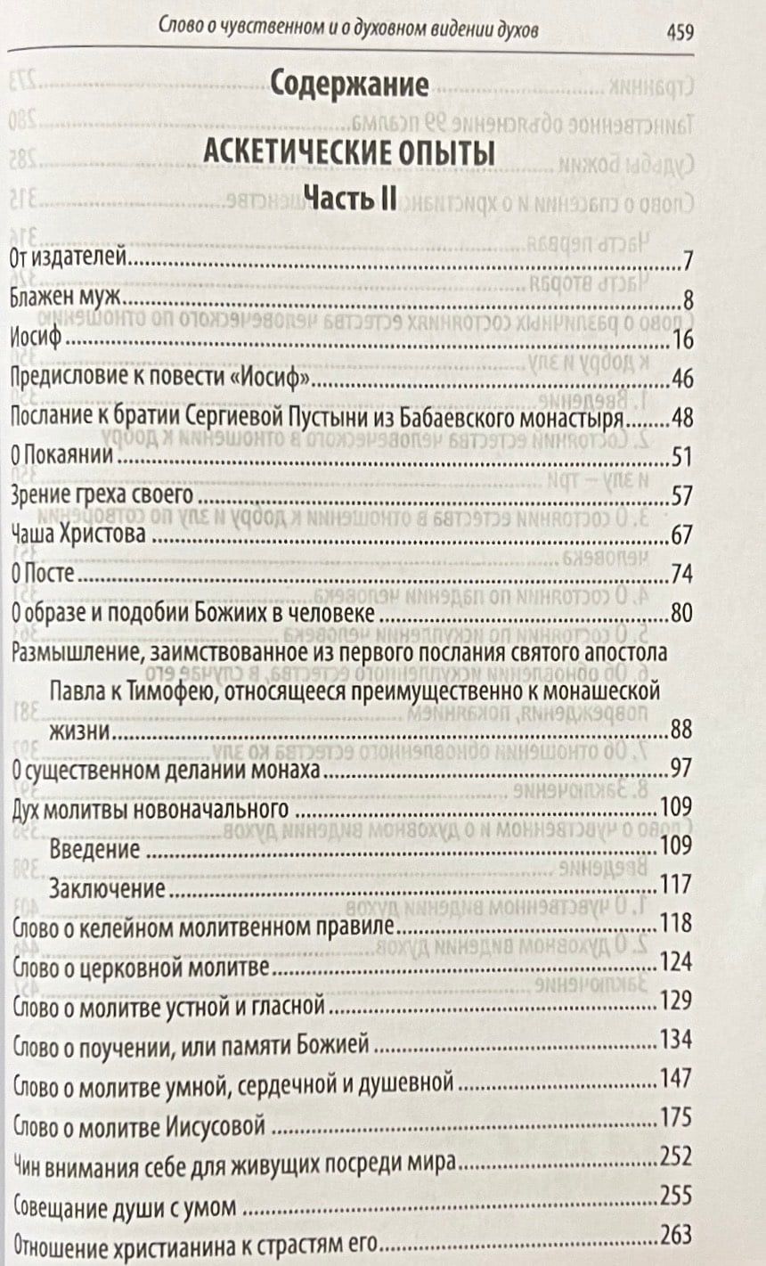 "Ascetic Experiments" in 2 parts - an invaluable contribution of the saint to the Orthodox teaching on asceticism - the science of salvation. Long before his canonization, St. Ignatius was revered as a spiritual instructor and teacher. "The writings of His Eminence Ignatius," noted the Venerable Elder Nikon of Optina, "are necessary, they are ... the alphabet of spiritual life." The book was published for the first time in 1865, two years before the blessed death of St. Ignatius, and thus became a kind of spiritual testament to his admirers. The first part of the "Ascetic Experiments" included admonitions on the study of the Gospel and the reading of the holy fathers, on love of neighbor and love of God, on fasting and prayer, reflections on faith and monasticism. This work reveals to the reader the unadulterated experience of the holy prelate, who built his spiritual life on the basis of Holy Scripture and the spiritual Tradition of holy Orthodoxy. St. Ignatius expounds in detail the teachings of the holy fathers on faith, prayer, the Gospel commandments and beatitudes, repentance, humility, struggle with passions, applied to the peculiarities of being and the challenges of the world of the modern reader. The second part of the "Ascetic Experiments", which became a table book for monastics and laymen, includes Words on the fear of God and the love of God, on cell prayer rule and church prayer, on salvation and Christian perfection, meditations on the destinies of God. How exactly the true life according to the Gospel leads to repentance and spiritual renewal, tells this book. And also about the experience of the holy fathers, the laws of spiritual life, which the saint advises with attention to follow everyone who has entered the narrow path, help to acquire a saving knowledge of himself and reveal to man the meaning of the Cross of Christ.