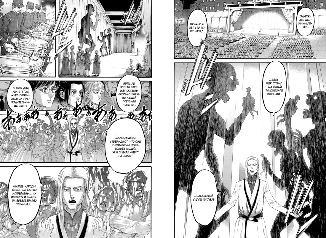 Representatives of the world's powers gather in Marley to attend a speech by Willy Tyber, who warns everyone of the threat from Paradise Island. He is helped to convince the world of the seriousness of this threat by the rebellious titan Eren Yeager, who appears on stage in the middle of the speech. The grand battle between the attacking titan and the hammer titan marks the beginning of a great new war....