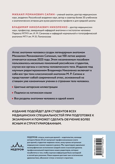 This is the best-selling anatomy book in Russia. The author is the renowned Russian anatomist M. Sapin, edited by his student V. Nikolenko. The concise and informative texts are complemented by the author's full-color illustrations.