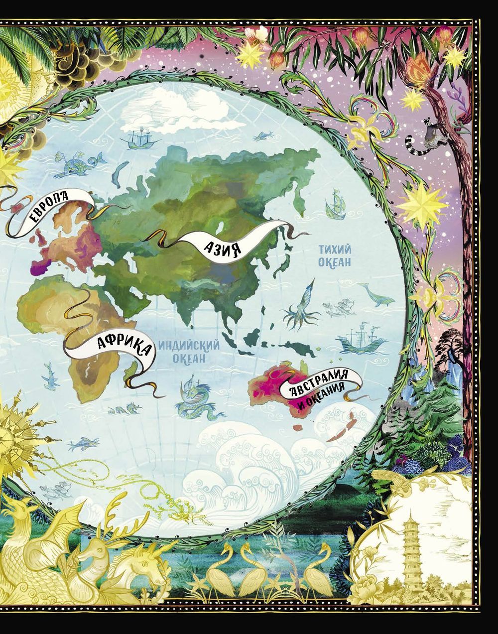 A book with incredibly beautiful illustrations for everyone who is fascinated by magical creatures and everything mysterious. You will learn about the most popular mythical creatures from around the world, hear stories and legends about them and even be able to imagine them! Who brought fairy tales into the world? How to defeat the most fearsome basilisk? What kind of dragon sits on the spire of Kazansky Station in Moscow? Where can you meet Bigfoot? This amazing atlas will give an idea of what people living on different continents believed in. The book contains the most famous fairy tales of the world. Detailed and vivid illustrations will take you into the world of myths, legends and magic, they will help you imagine what each creature looked like. Read together with your children, look, fantasize and wonder.