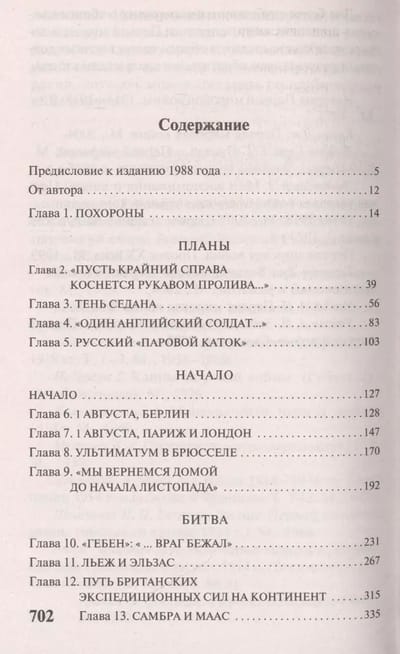 "The Guns of August" is one of the most significant historical works of the 20th century. It won the Pulitzer Prize, has been reprinted many times, and has been translated into all the world's leading languages. President John F. Kennedy recommended it as mandatory reading for his entourage during the Cuban Missile Crisis. He saw in Barbara Tuchman's book a vivid description of the avalanche-like process of sliding into war in the conditions of an acute international crisis and feared that in an unstable world with nuclear weapons, a similar situation could lead to even more catastrophic consequences.