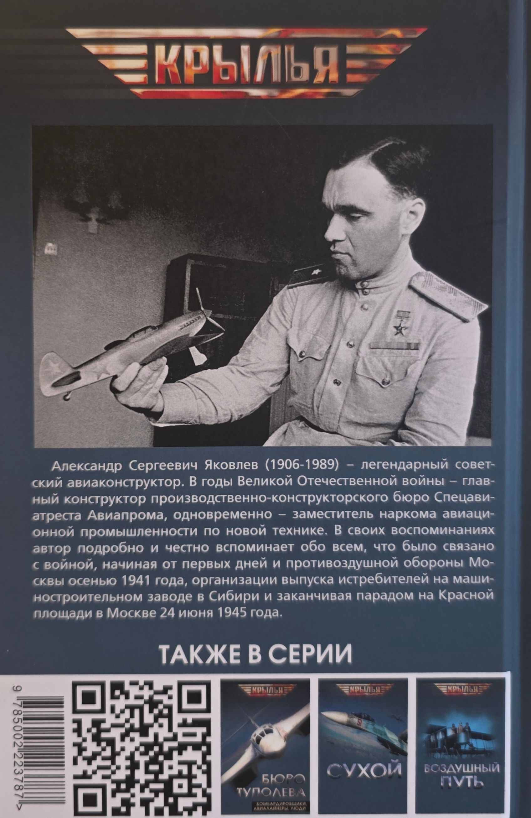 Alexander Sergeevich Yakovlev (1896-1989) is a legendary Soviet aircraft designer. During the Great Patriotic War, he was the chief designer of the production and design bureau of the Spetsaviatrest of the Aviation Industry, and simultaneously the deputy people's commissar of the aviation industry for new technology. In his memoirs, the author recalls in detail and honestly everything that was connected with the war. Starting from the first days of the war and the air defense of Moscow in the fall of 1941, organizing the production of fighters at a machine-building plant in Siberia and ending with the parade on Red Square in Moscow on June 24, 1945.