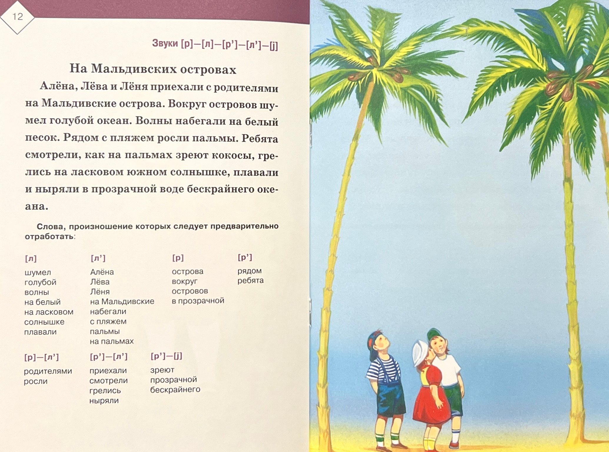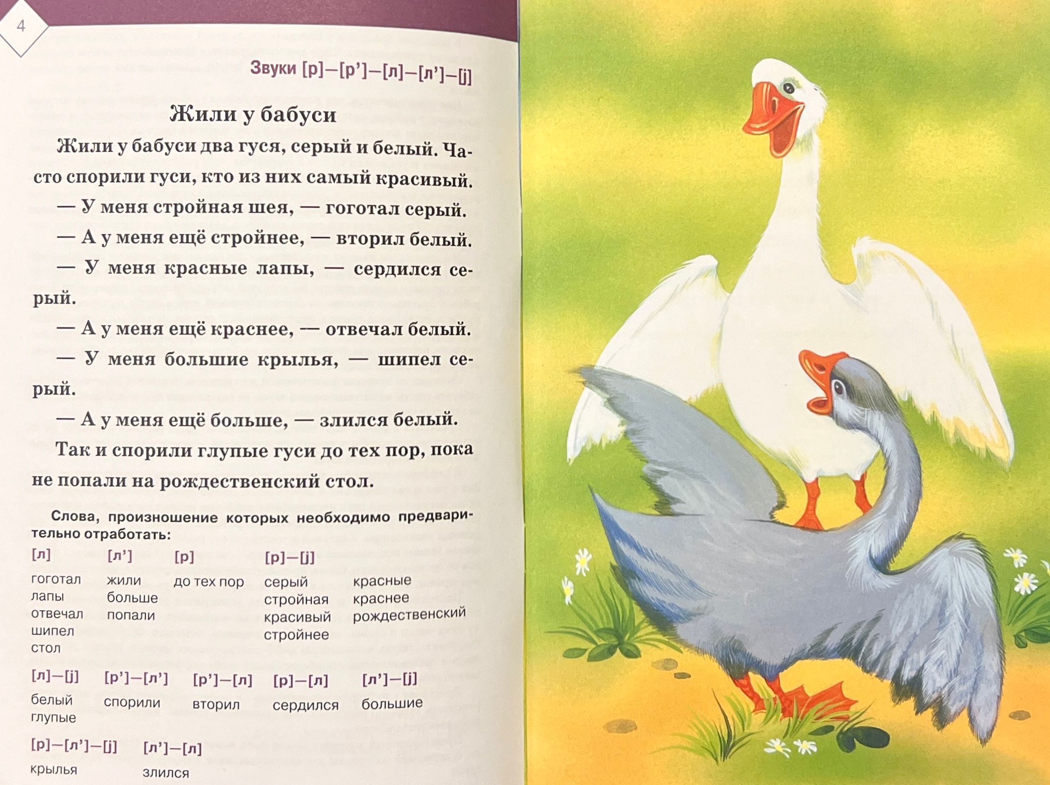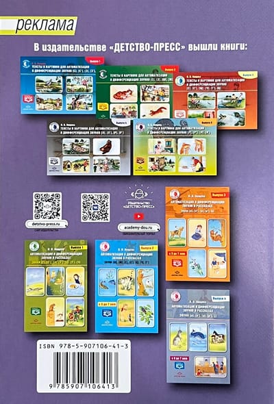 The manual contains pictures and texts for automating and differentiating the sounds [l], [l'], [p], [p'], [j]. The manual allows you to differently organize work with the child: to repeat the text one sentence at a time following the speech therapist with the support of the picture, having previously worked out the pronunciation of words outside the text, retell the text with the support of the picture or read it, correctly pronouncing words with complex sounds. It is addressed to teachers and speech therapists of preschool educational institutions and school speech therapy centers, kindergarten teachers, parents of children with speech development problems.
