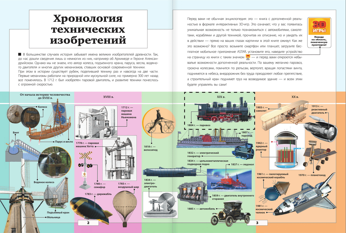 Unfortunately, not all of us can go on a cruise ship or become an airplane pilot, see how a car is assembled in a factory or how a power plant works. But everything is possible if you open this book. After all, you have in your hands a unique edition with augmented reality (AR) in the format of interactive 3D games. This means that thanks to modern technologies you will not just read the text and look at the illustrations, but you will be able to see all the technology in action right on the pages of the book and even hear it! Moreover, you yourself will drive a steam locomotive, sit in a helicopter, lift the cargo on the boom of a construction crane to the building under construction, take part in a race on a supercar. And how spectacular all this will be depends only on you! Realistic visual and sound special effects that accompany the game will make reading this book even more exciting.