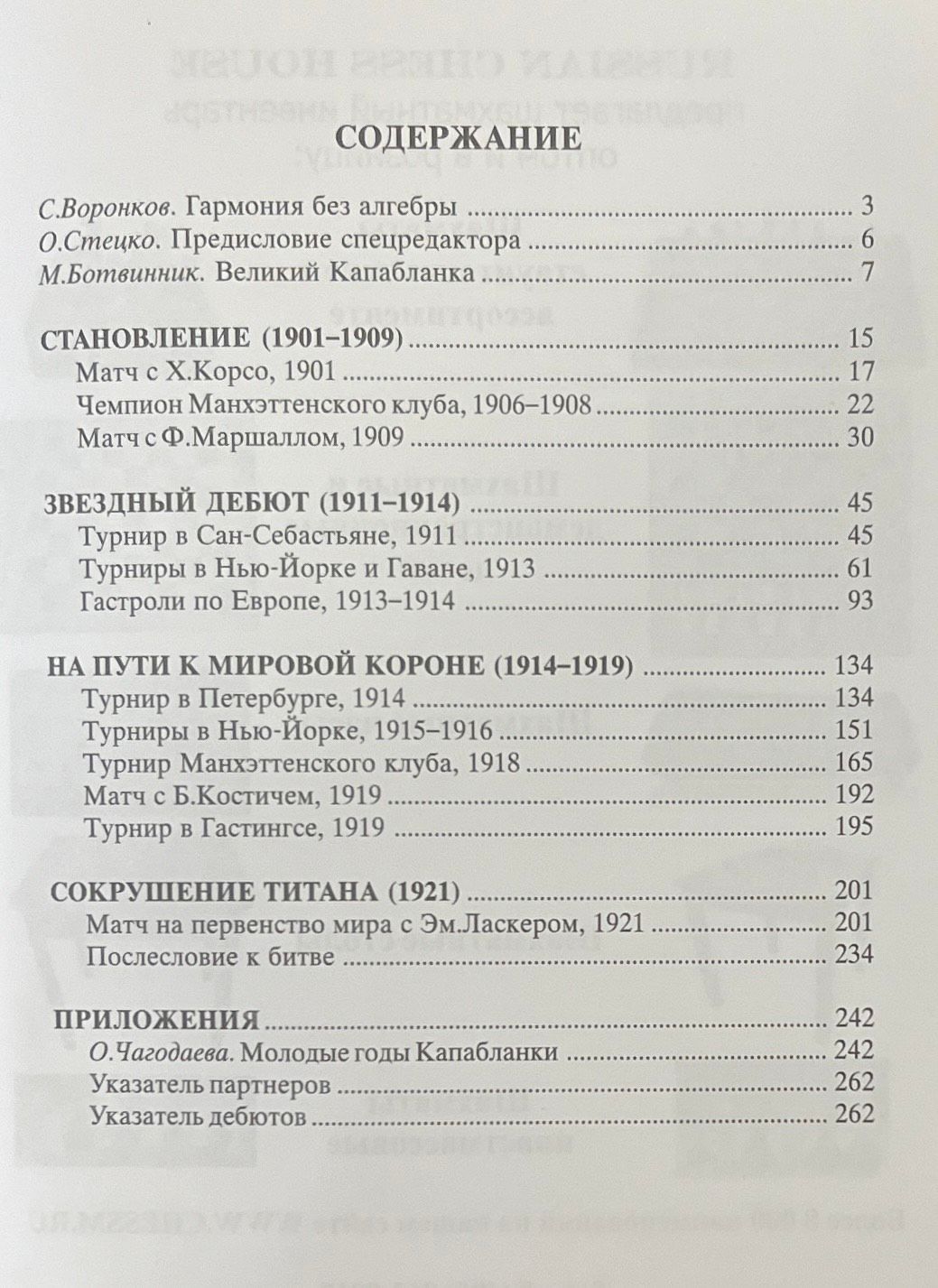 Capablanca does not have a book with the title "Self-Portrait of a Genius". Nevertheless, it was written by him from beginning to end. This two-volume book is truly unique. For the first time it contains all the games of the third world champion with his own commentary, computer-tested "according to Kasparov", as well as Capablanca's memoirs, interviews, articles, reviews and notes, most of which have been translated into Russian for the first time. In essence, this is "My Chess Career", only covering the entire creative path of the great Cuban.