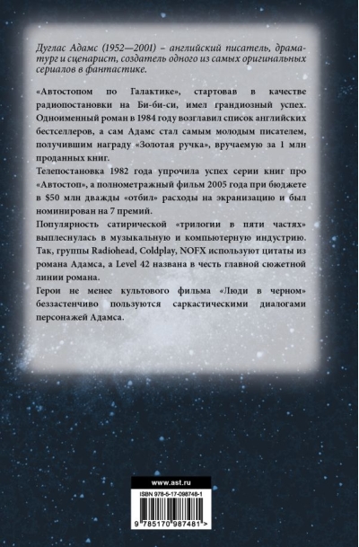 "Hitchhiker's Guide to the Galaxy", starting as a radio play on the BBC, was a huge success. The novel of the same name in 1984 topped the English bestseller list, and Adams himself became the youngest writer to receive the Golden Pen Award, awarded for 1 million books sold.