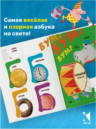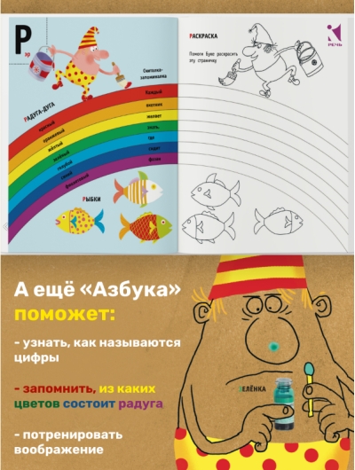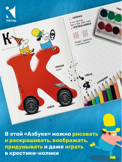 Every little one needs an alphabet book that introduces them to all the letters of the alphabet. But what if this introduction were turned into a fun game? Artist Uncle Kolya Vorontsov has created an alphabet book that's just that—not just educational, but playful and fun! It allows for drawing and coloring, imagining, creating, and even playing tic-tac-toe. And the educational part is helped along by the characters Buka and Byaka, who transform each page into a short, engaging story. Not only will they keep you entertained, but they'll also teach you a whole host of useful things: for example, the names of numbers and how to remember the colors of the rainbow. You've definitely never encountered an alphabet book like this one!