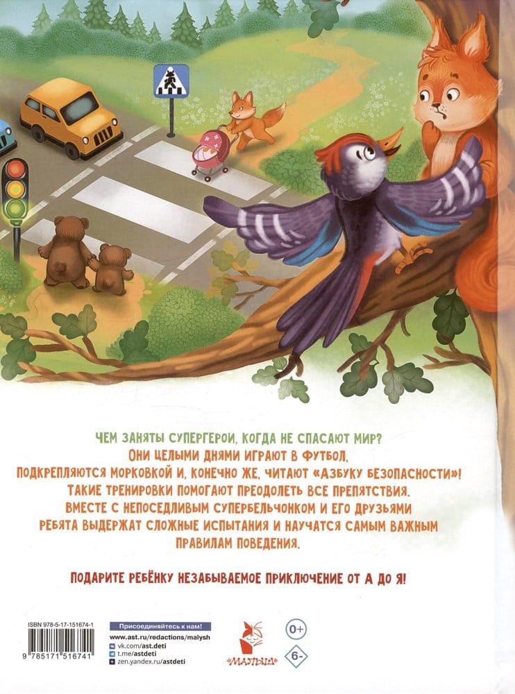 Life in a fairy-tale forest is full of little joys. The animals skate, race on scooters, drink flavored tea and dream of growing up soon. And they also go to school and learn the ABCs of safety, which every superhero should know. After all, even in a good fairy tale can be a lot of dangers, for which you need to be ready. What should you do if a stranger approaches you? Why wash your hands? What are the dangers of electricity? How to properly cross the road? Together with the restless squirrel and his friends the children will experience exciting adventures and learn the most important rules of behavior. Give your child an unforgettable journey from A to Z.