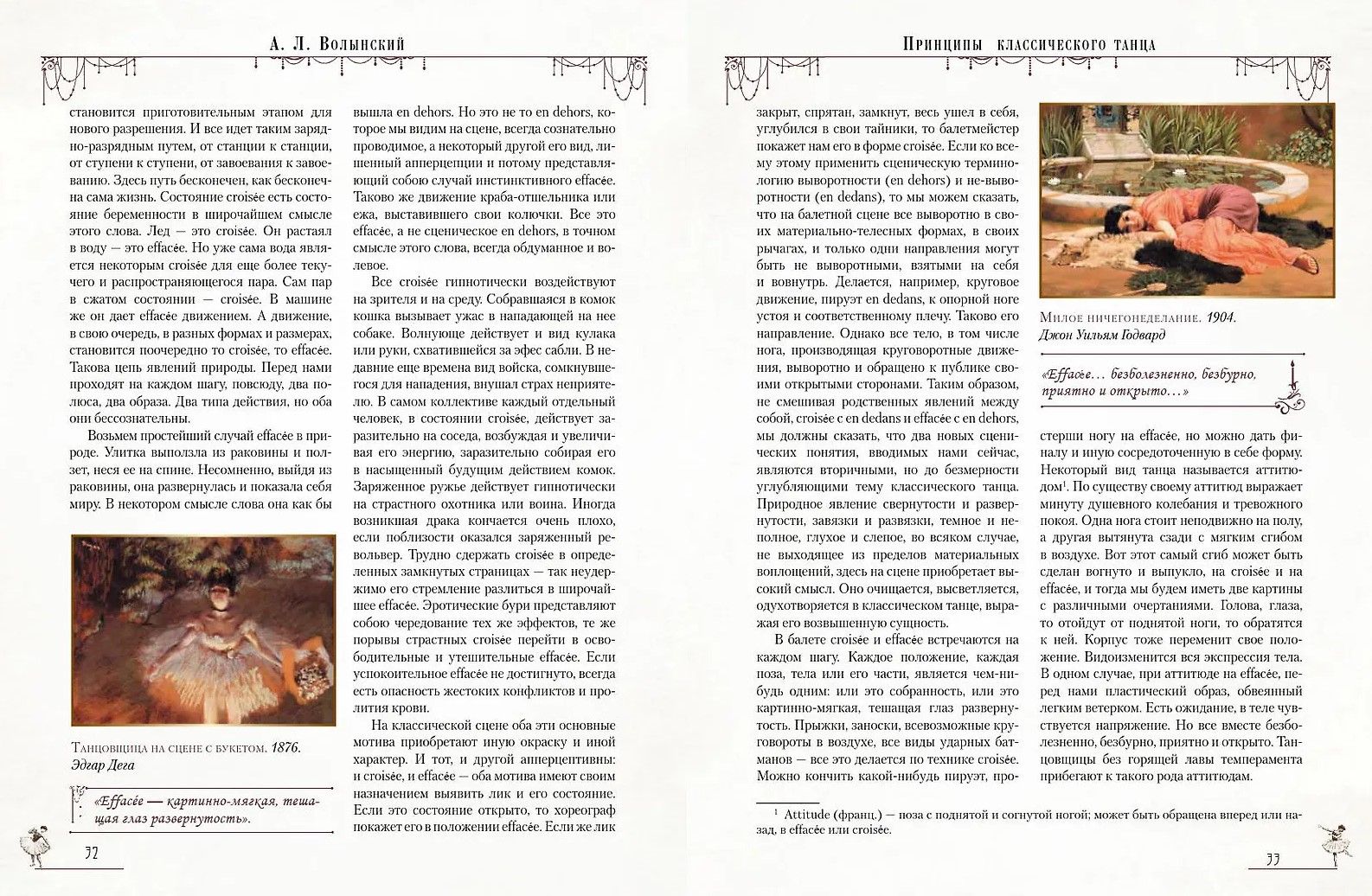 The book covers a broad spectrum of names—from the great masters of European ballet to the most prominent figures of the Russian ballet scene: Vaslav Nijinsky, Anna Pavlova, Matilda Kschessinska, and Ekaterina Geltser. Outlining the principles of dance movement, Volynsky conceptualizes it as a living philosophy, in which every gesture, turn, and pose is imbued with metaphysical meaning.