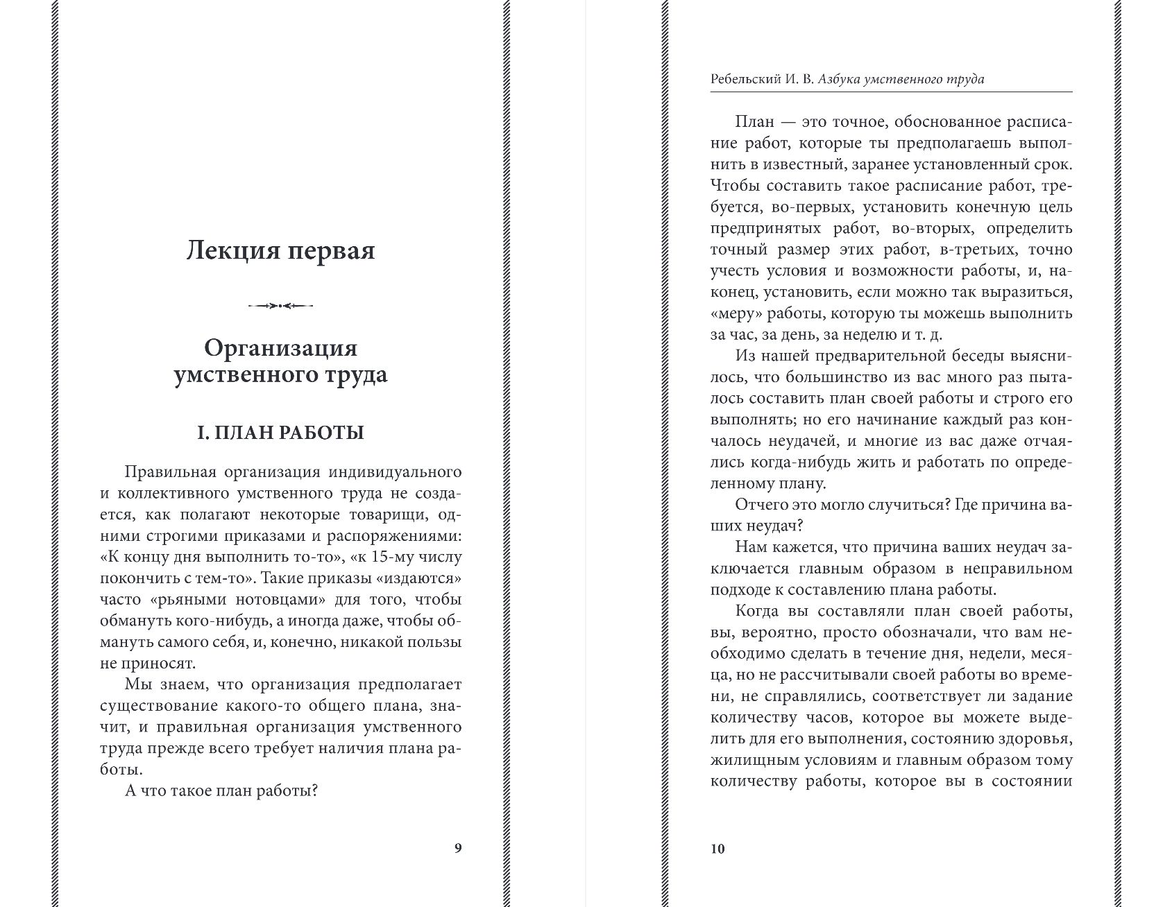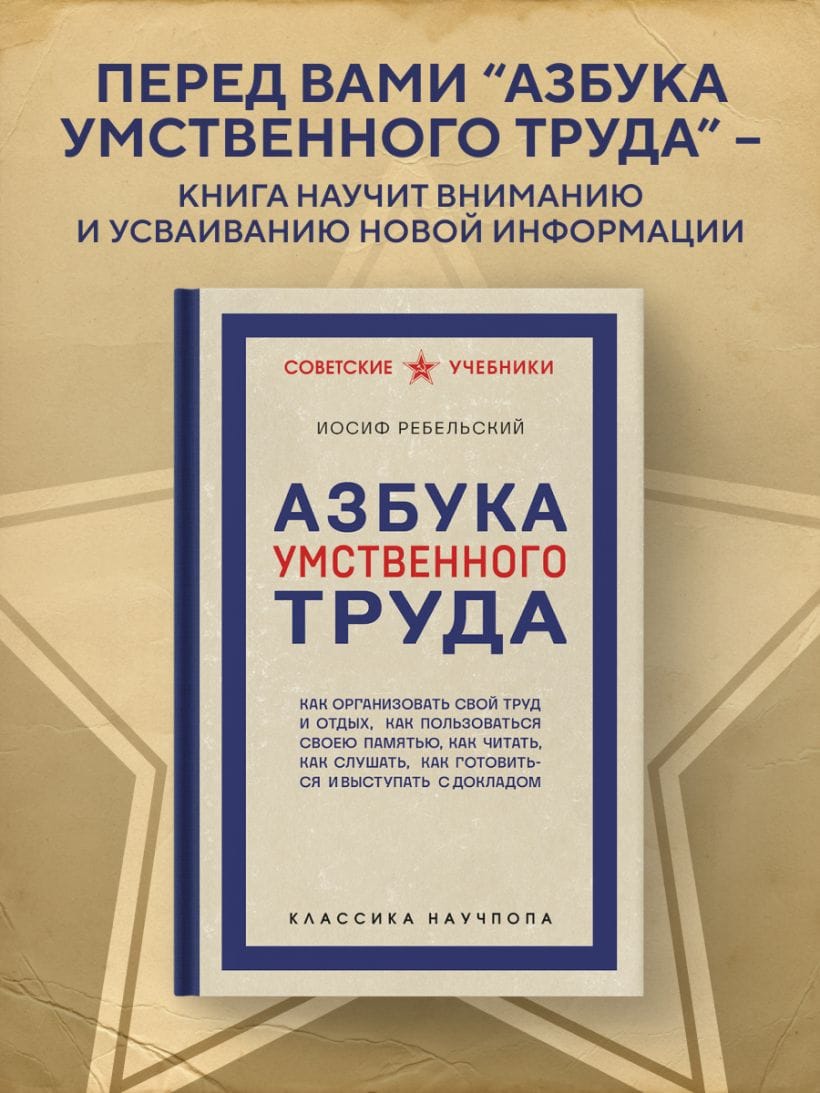 Iosif Rebelsky teaches how to organize your mental work: from note-taking to effective reading and combating fatigue. The author explains in simple terms about memory, attention, logic, note-taking, reading, and learning. This book will be indispensable for schoolchildren, students, teachers, and anyone who studies or works with their mind.
