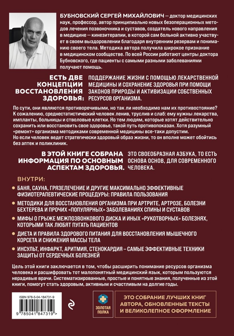 - Methods for restoring the body in cases of arthritis, arthrosis, ankylosing spondylitis, and other "popular" back and joint ailments;